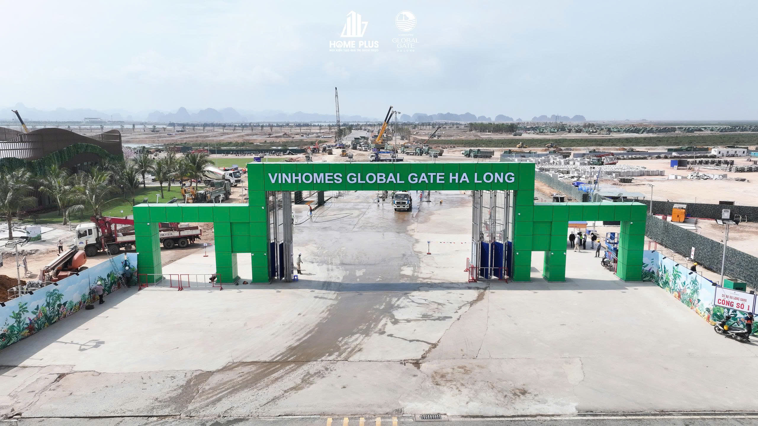Theo ghi nhận thực tế vào đầu tháng 2/2026, Chủ đầu tư Vingroup đã chính thức hoàn thiện việc lắp đặt cổng chào tại vị trí lối vào số 1 của dự án. Biển hiệu mang dòng chữ Vinhomes Global Gate Hạ Long rực sáng trên trục đại lộ chính, ngay khu vực kết nối từ Quốc lộ 18 đi vào trung tâm dự án.