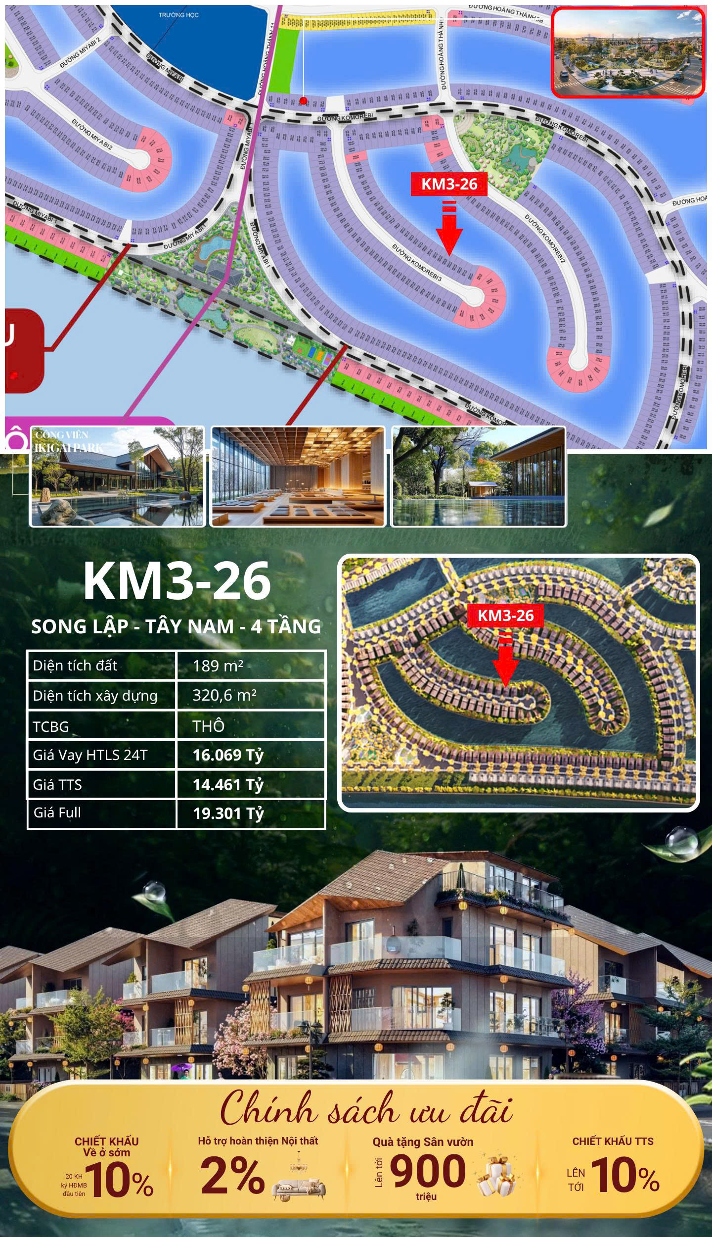Căn BT Song lập Km3-26 Gía tốt nhất hiện tại còn lại tại Khu Komorebi