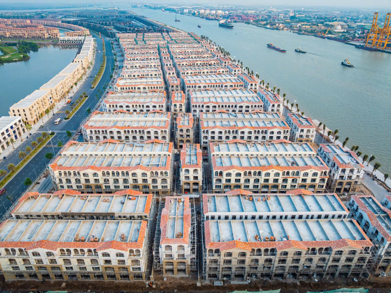 Biệt thự tứ lập ở hai đầu đại lộ có mặt tiền tới 8 m, mặt hông rộng 20 m, hướng sông, phù hợp làm trụ sở ngân hàng, tập đoàn. Shophouse liền kề có mặt tiền 5 m, sâu 15 m, phù hợp cho doanh nghiệp vừa và nhỏ.