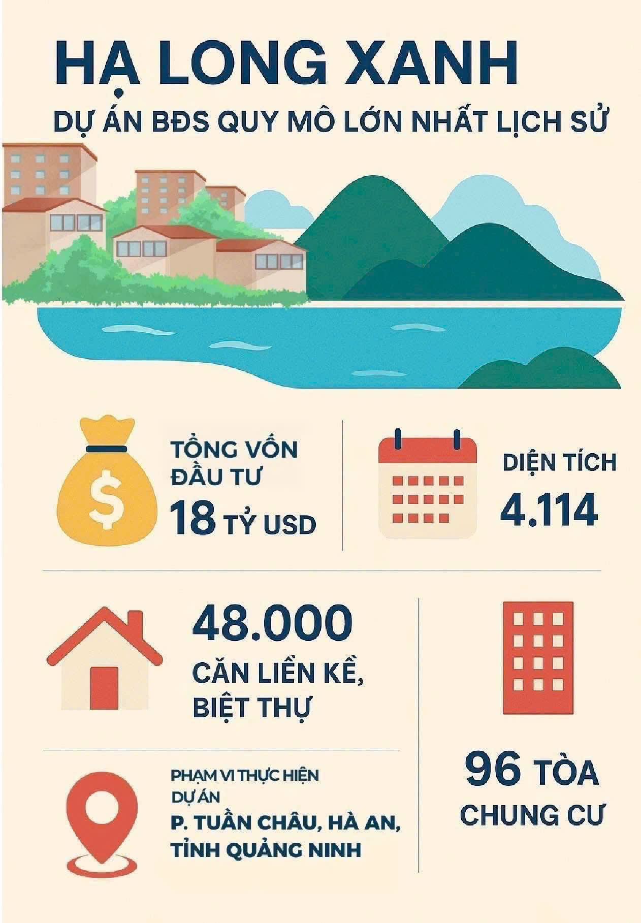 Dự án Khu đô thị phức hợp Vinhomes Hạ Long Xanh có quy mô trên 4.100ha, bao gồm gần 1.000ha thuộc phường Tuần Châu và trên 3.100ha thuộc phường Hà An. Dự án ảnh hưởng đến 3.388 hộ dân, tổ chức của 2 phường, phải giải phóng mặt bằng. Hiện nay đã có 1.474 hộ đã nhận tiền, bàn giao mặt bằng, 26 hộ đủ điều kiện được bố trí tái định cư. Các trường hợp còn lại đang được phường Tuần Châu và Hà An tiếp tục hoàn thiện hồ sơ, phương án bồi thường.