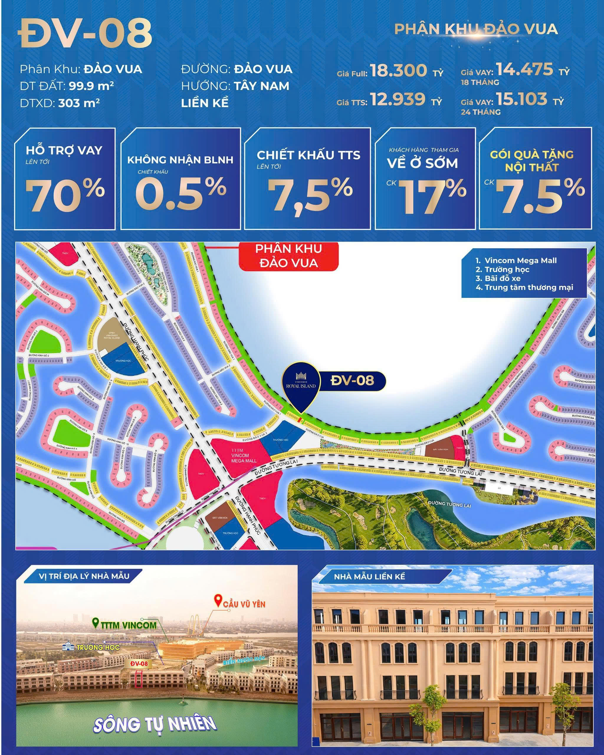 +ĐV-08: Căn sân vườn "Kề sông, cận phố", tầm view tuyệt mỹ,Gần ngay trung tâm thương mại Vincom Mega Mall.trường học và các tiện ích chỉ mấy bước chân